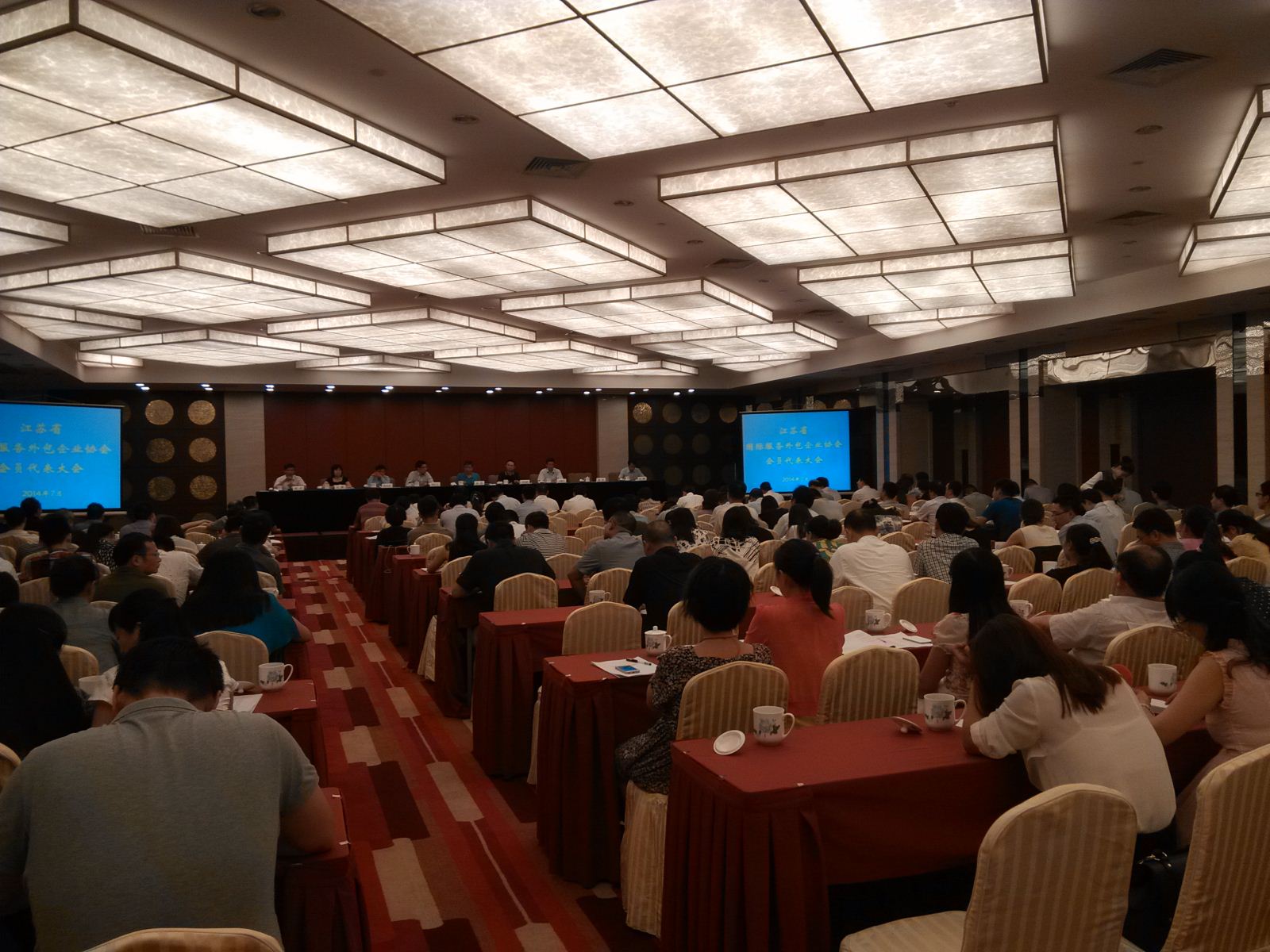 2014年7月18日南京市外包協(xié)會受邀參加江蘇省外包協(xié)會會員代表大會,在大會期間聽取了省商務廳領導對江蘇省服務外包行業(yè)發(fā)展的相關發(fā)言。